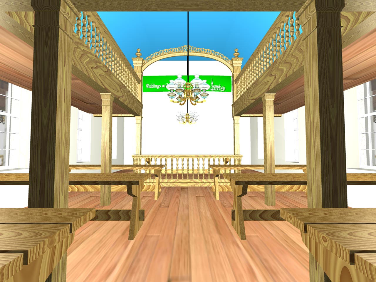 A model of the church interior restored: